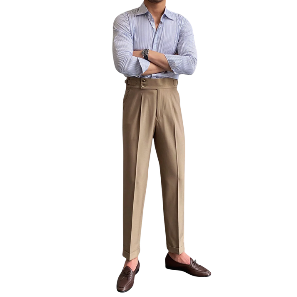 Sverre er stilige vintagebukser som kombinerer klassisk utseende med moderne komfort. Det perfekte valget for menn som ønsker å gjøre inntrykk – enten i hverdagen eller ved spesielle anledninger.